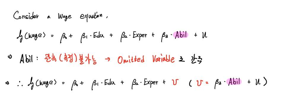 따라서 이러한 문제를 막기 위해 관측 불가능한 Omitted Variable 대신 관련성이 높은 대리 변수인 Proxy Variable을 추가해야 합니다.