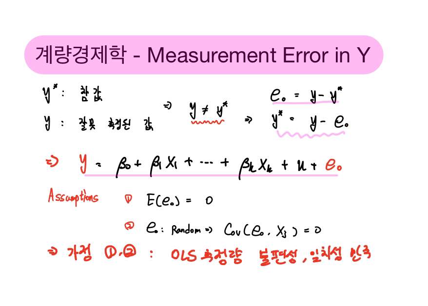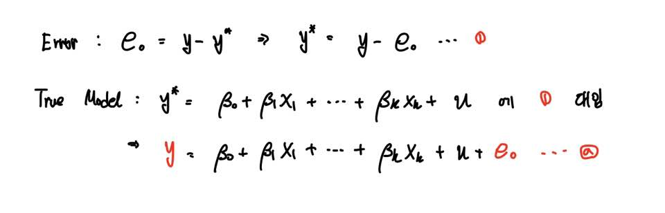 우리가 y에 Measurement Error가 존재하는 모형을 식(a)라고 정의하였으므로,