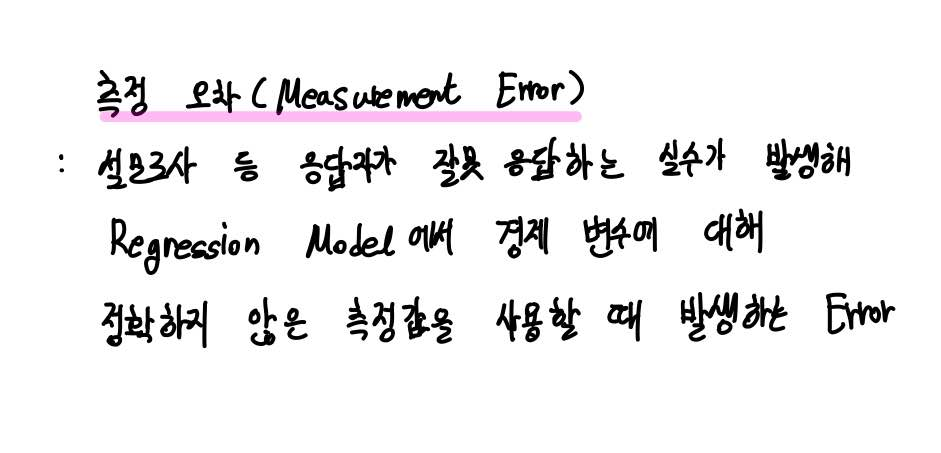 우리는 계량경제학에서의 문제를 따지고 있으므로, Regression Model에서 이러한 정확하지 않은 측정값이 존재할 때 어떻게 해결하면 좋을지 살펴보도록 하겠습니다.