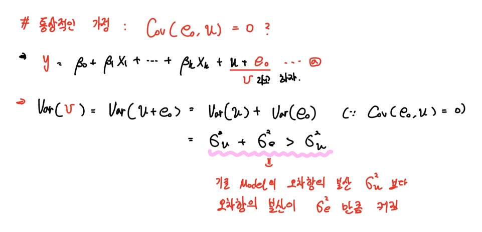 만약 Cov(u, e)가 0이 아니라면 분산은 더 커지게 되겠죠?