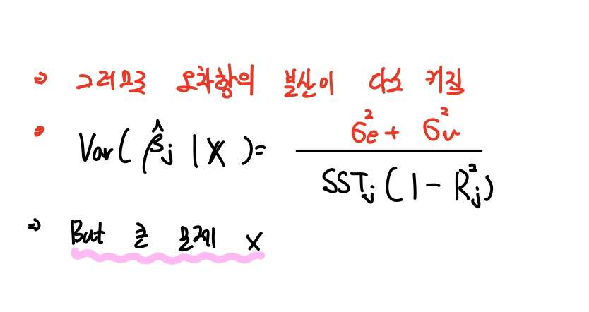 그렇다면 결론적으로 OLS추정량의 분산이 다소 커지게 됩니다.