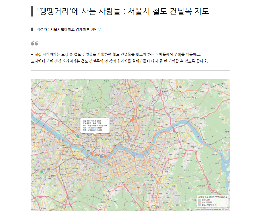 이번 포스팅은 2019년에 교내 맵핑앤아카이빙 프로그램에 참여하여 개인적으로 수행한 프로젝트인