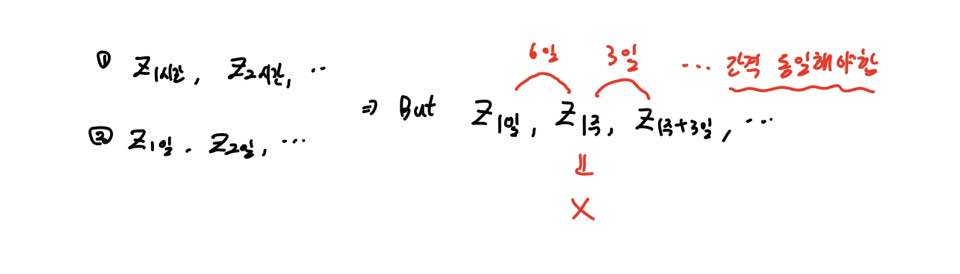 만약 일별 자료임에도 불구하고 간격이 1일, 3일, 2일 3시간, 5일 10시간 .... 이렇게 된다면 올바른 추정을 할 수 없게 되겠죠?