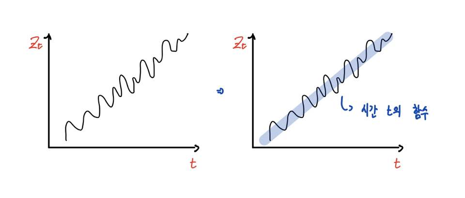 우리가 보고자하는 자료가 시간에 따라 증가 혹은 감소하는 어떠한 추세를 보인다면 이는 시간 t에 대한 함수로 나타낼 수 있습니다.