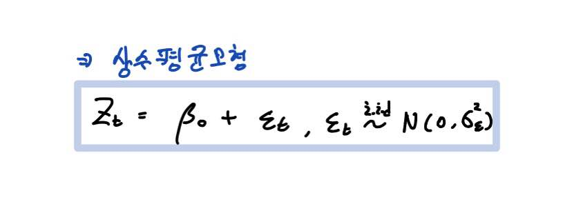 그래서 먼저 이러한 상수평균모형의 모수(Parameter)는 β가 되며, 이 β의 LSE는 β^ = 자료 Z의 평균 이 됩니다.