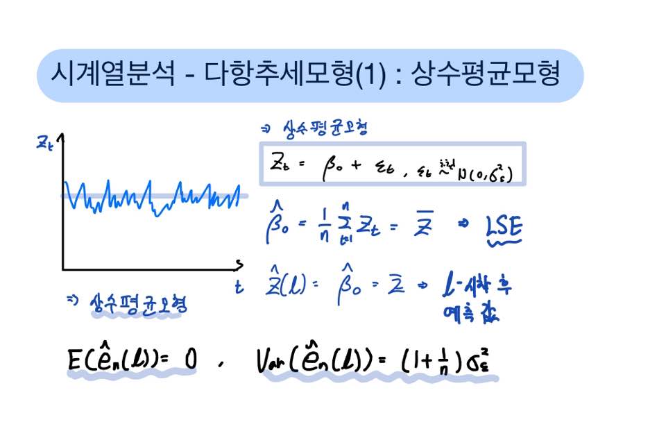 왜냐하면 상수평균모형은 시계열자료가 일정한 수준에 머무는 trend를 보일 때 적용하는 모형이라고 했으니깐요.