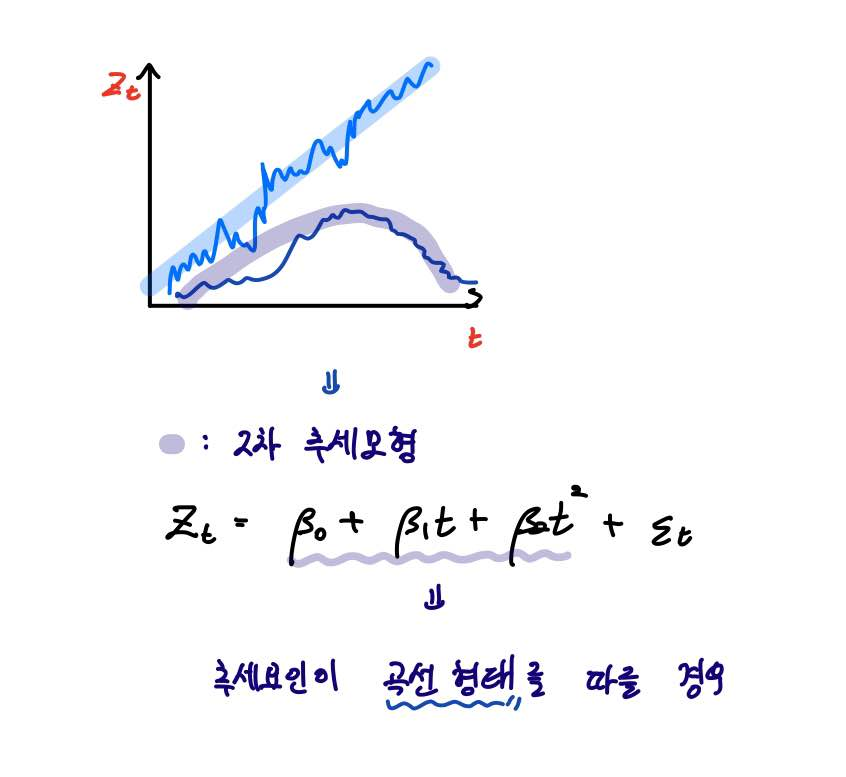 고차 추세모형은 이전 포스팅에서 간단하게 다뤄보긴 했으나 다시 한번 상기시켜드리자면 다음과 같이 나타낼 수 있습니다.