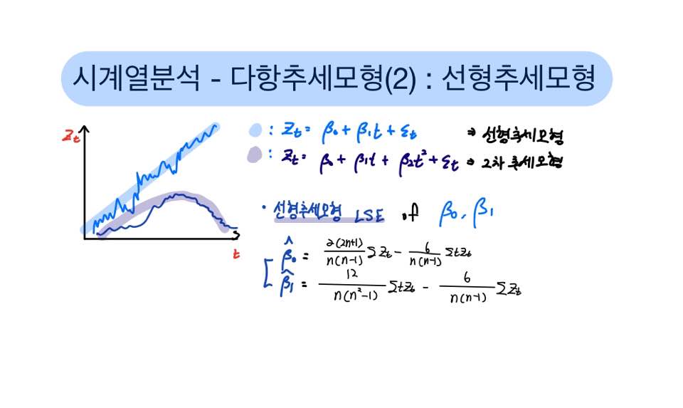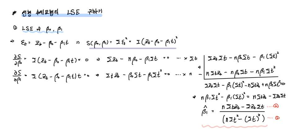 이번에는 선형추세모형의 최소제곱추정량을 유도해보도록 하겠습니다.