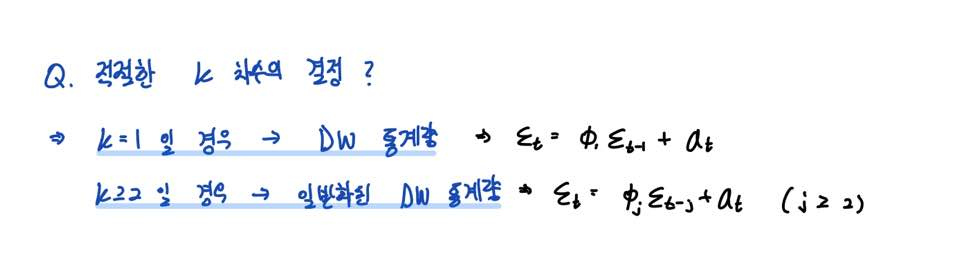 즉 k=1일 경우 DW 통계량을 사용하며,