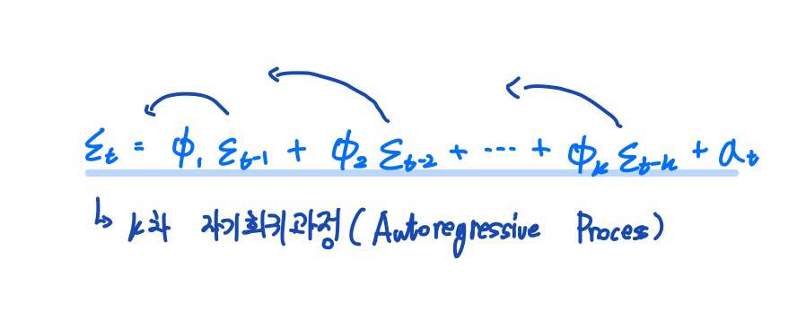 이를 오차항이 k-차 자기회귀과정(Autoregressive Process)을 따른다고 하며,