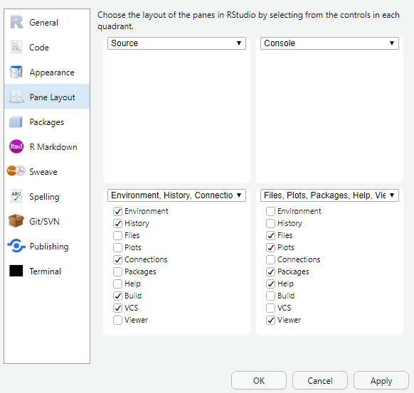 위에서 보다시피 RStudio는 총 4분할로 이루어져 있죠?