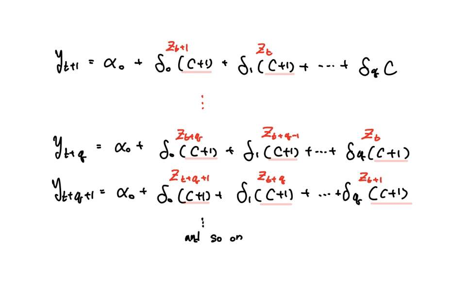 앞으로 드는 예시는 쉬운 이해를 위해 오차항이 0인 q차 FDL Model을 가정하겠습니다.
