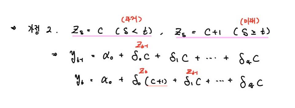 즉 위에서 보시다시피 t-시점에서의 설명변수 Z_t의 값이 c+1로 되어있죠.