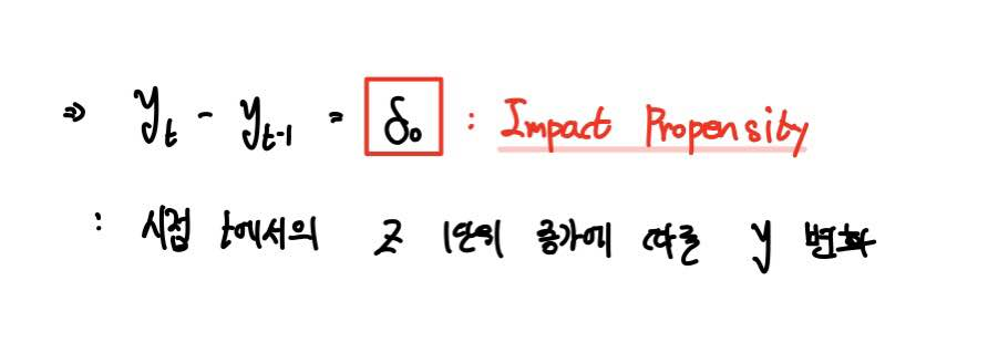즉 t-시점에서 설명변수 Z가 1단위 증가함에 따라 반응변수 y의 변화를 측정한 것을 Impact Propensity라고 합니다.