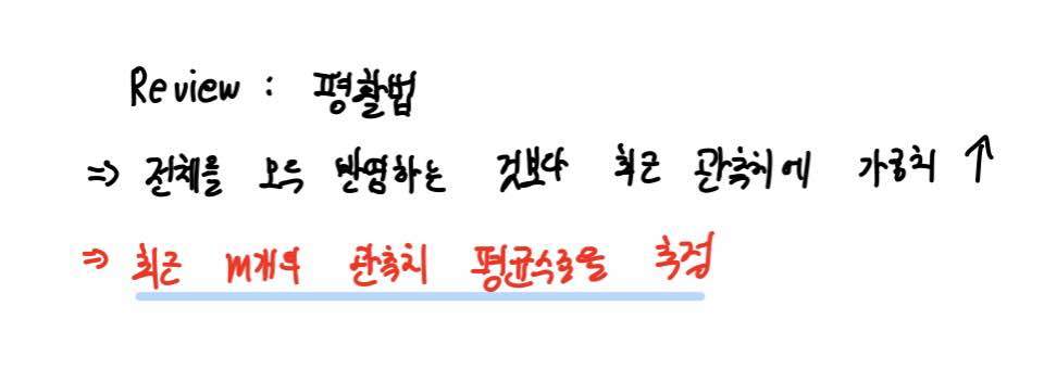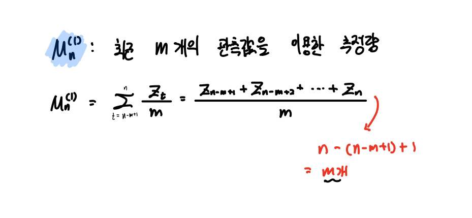 즉 최근 m개의 관측치만을 이용해 평균수준을 측정하면 변화를 보다 빨리 반영할 수 있습니다.